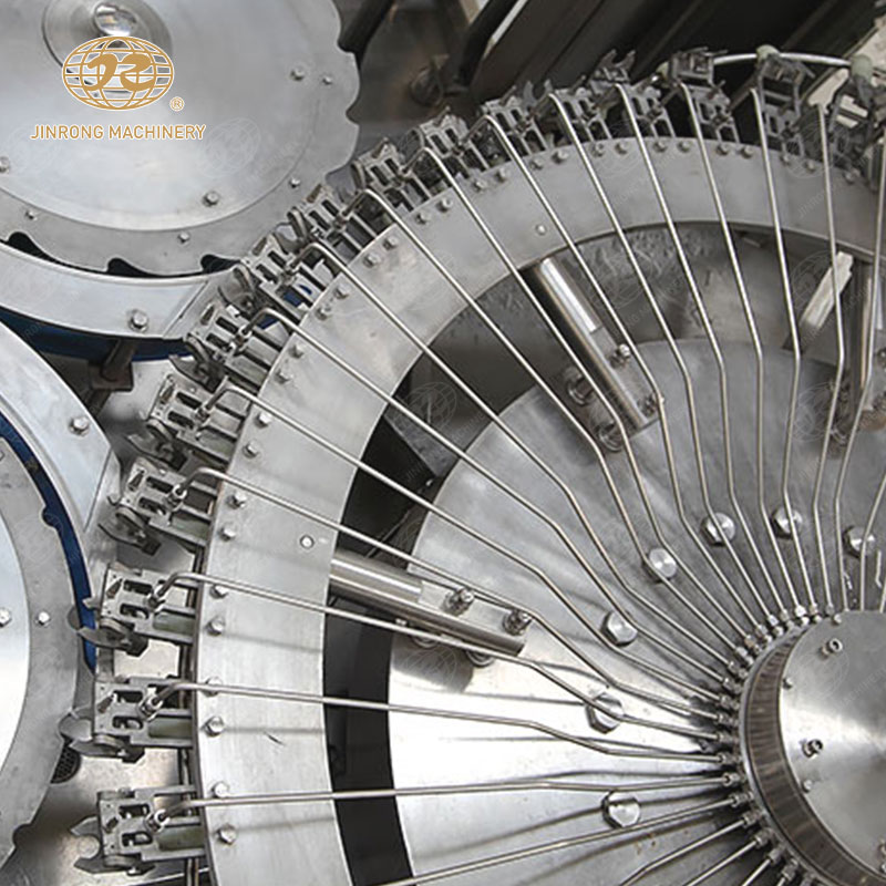 瓶洗凈系統是為了確保灌裝的水瓶在衛生條件下運輸和存儲。該系統會先對瓶體進行外表清洗,然后送入高壓噴洗區,利用噴嘴對內部進行高壓清洗,同時還有漂洗、消毒等步驟,最終保證瓶子的潔凈度和無菌性。